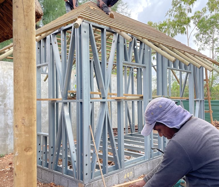 Répondant aux normes de résistance aux cyclones et au climat tropical ; favorisant l’utilisation de matériaux locaux tels que la paille de canne et le ravenale, les Happynest offrent toutes les garanties de fiabilité nécessaires.